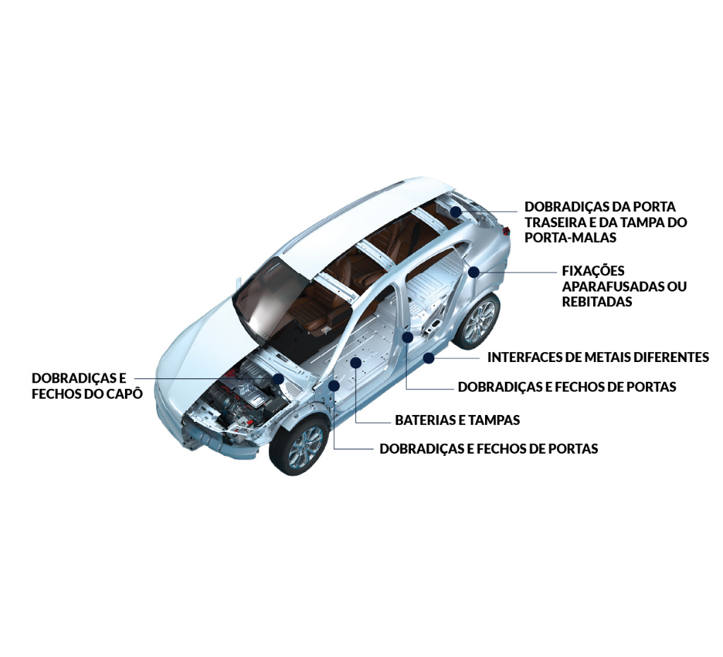 Promove a redução de peso permitindo a combinação de metais diferentes, ao mesmo tempo que proporciona uma barreira de isolamento, prevenindo a corrosão causada por reações galvânicas.